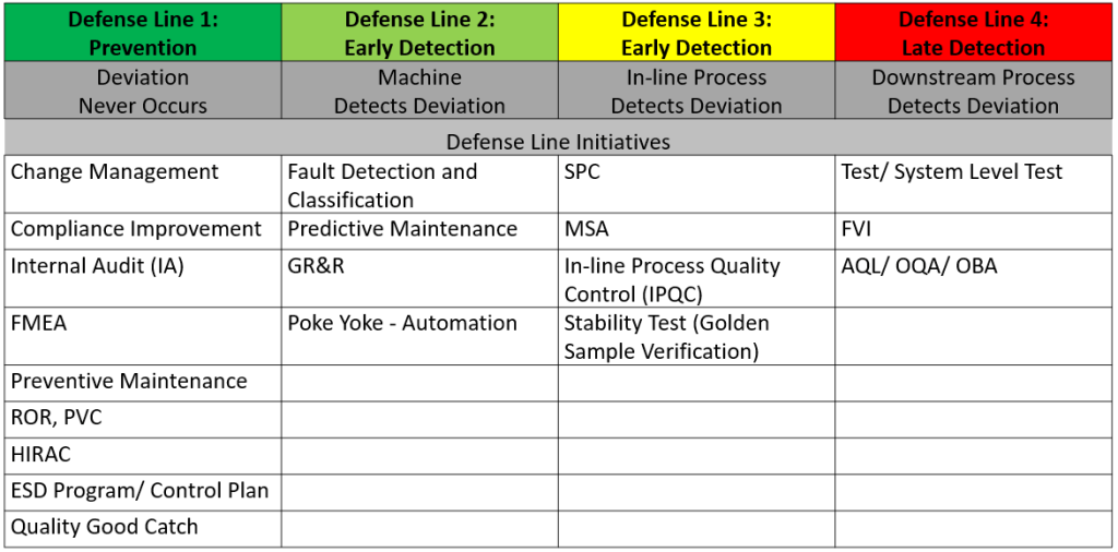 One systematic way to reduce variability is through the Quality Line Of Defense Initiatives. It systematically looks into system weaknesses. This starts with the very obvious, which is visual, and then addresses the system of controls or preventative controls. We call this approach Shift Left Strategy. It involves moving quality improvements further up the value chain. The goal is to prevent problems as early as possible across all departments in the enterprise. This helps in minimizing risk and cost to the company.